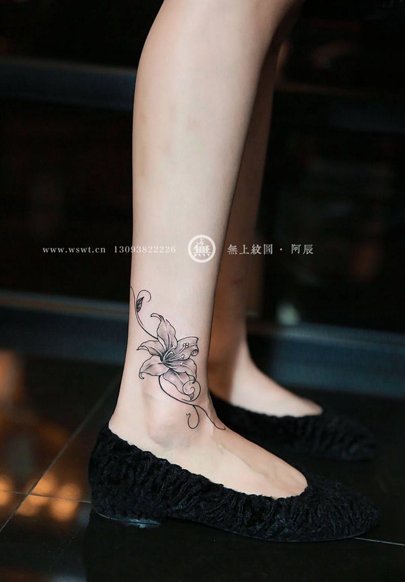 脚踝百合花纹身图片_成品脚部欧美清新植物无上纹图招生培训纹身图案