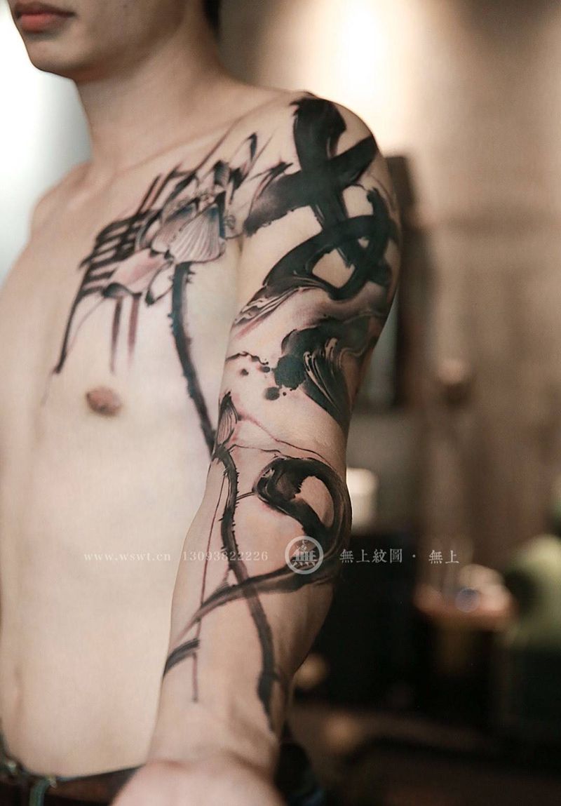 安自在·静·信纹身图片_成品手臂传统清新原创植物字符无上纹图书法招生纹身图案