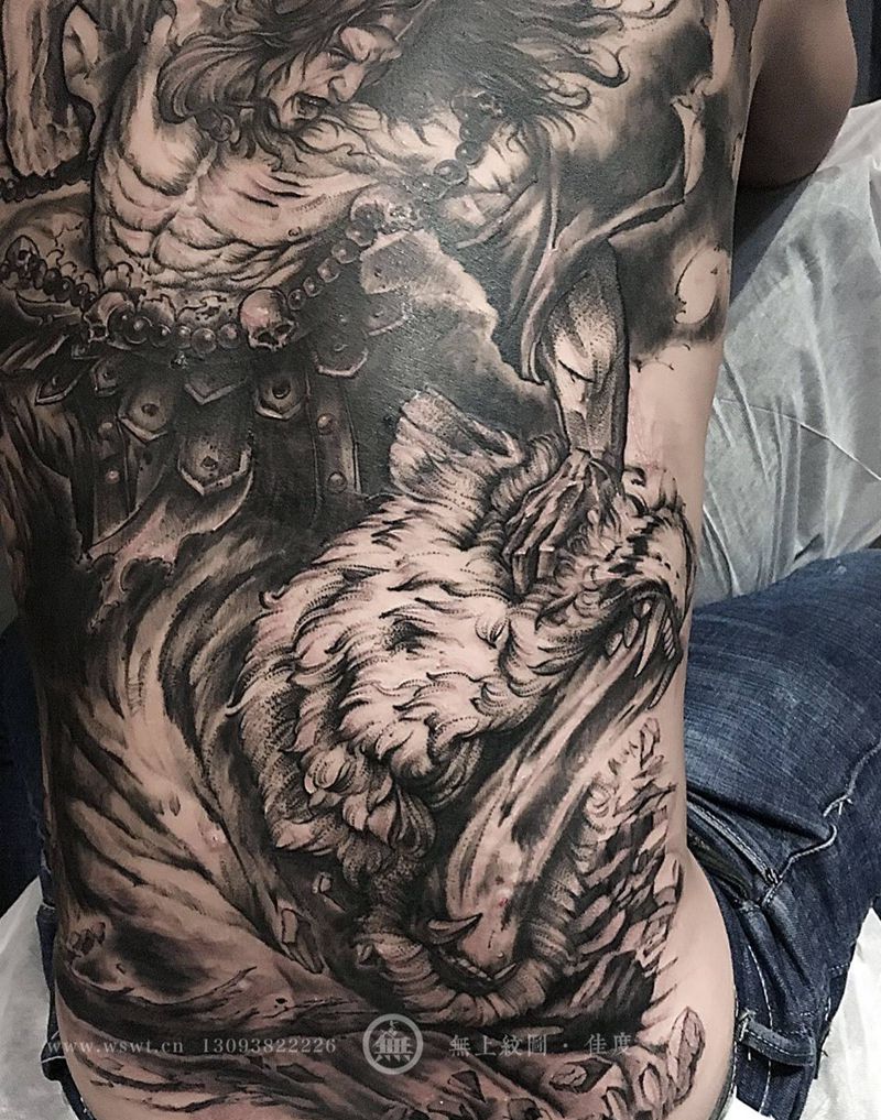 武松打虎纹身图片_成品背部传统人物原创动物无上纹图招生纹身图案