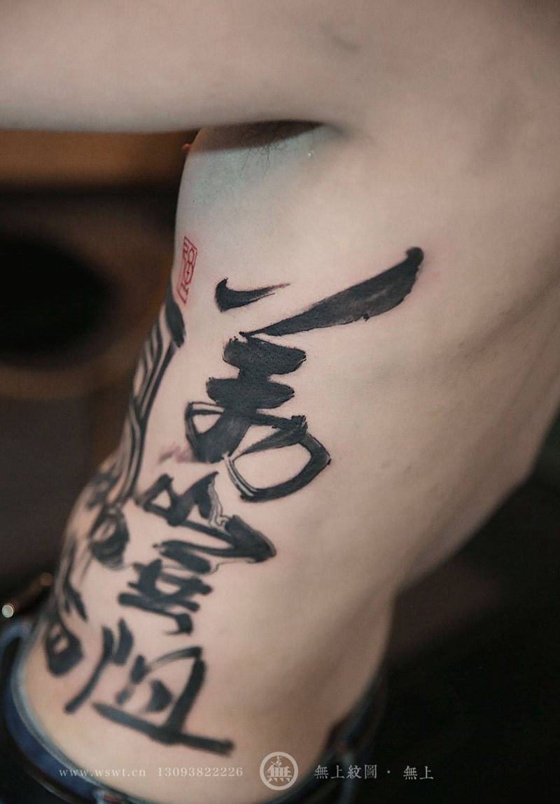 万山无阻纹身图片_成品腰部传统清新字符原创无上纹图书法招生纹身图案