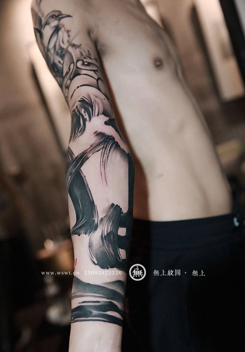 书法花臂纹身图片_成品手臂传统清新字符原创动物无上纹图书法水墨纹身图案