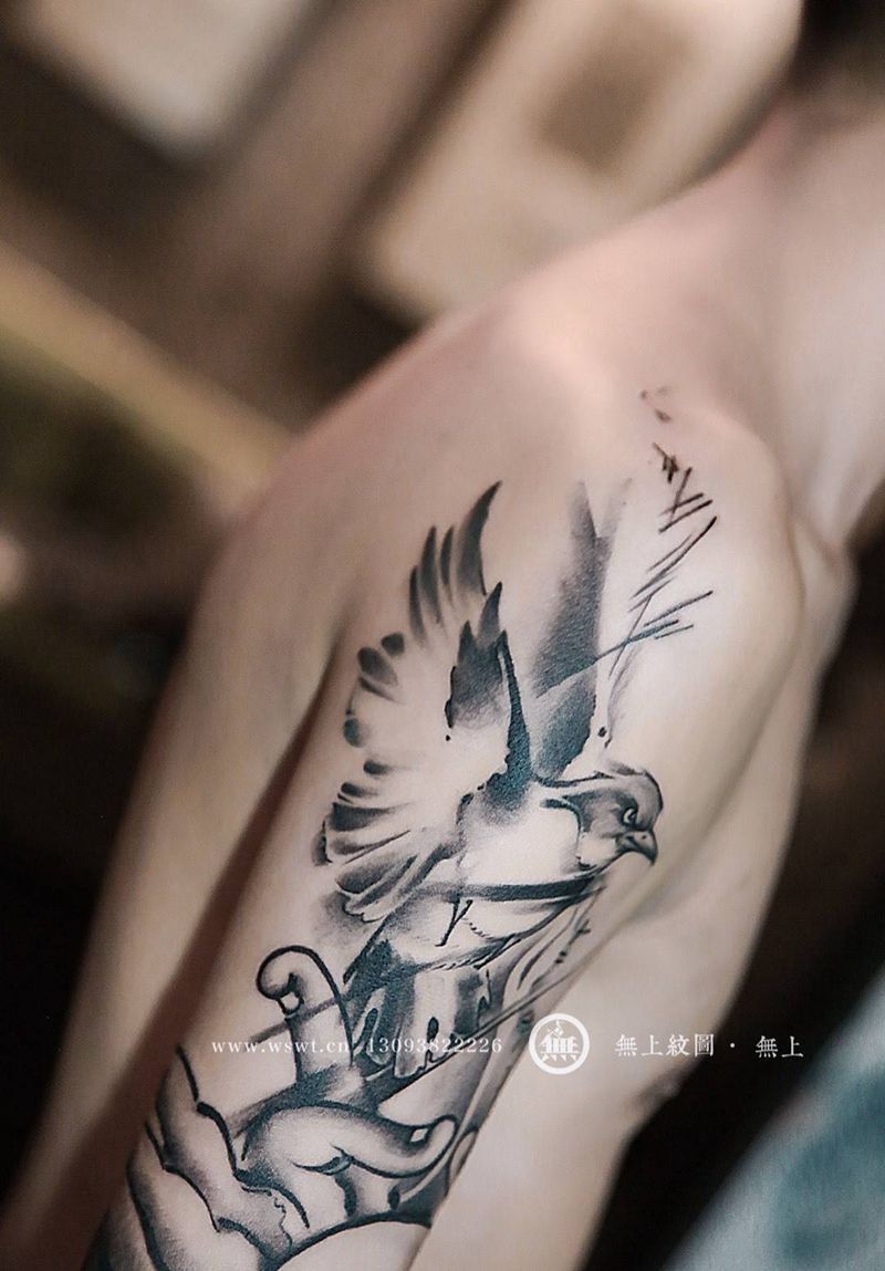 书法花臂纹身图片_成品手臂传统清新字符原创动物无上纹图书法水墨纹身图案