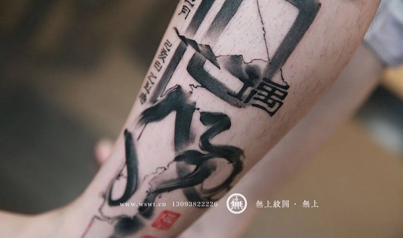 当前位置: 首页 >浙江省台州市纹身店-无上纹图纹身图案>小腿书法纹身纹身图片_成品腿部传统清新情侣字符图腾无上纹图书法水墨纹身图案