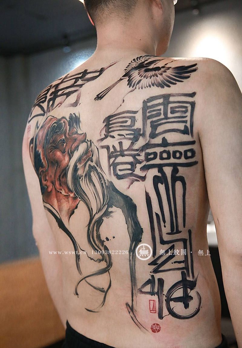 鸟倦知返纹身图片_成品背部传统人物字符原创无上纹图水墨书法纹身图案