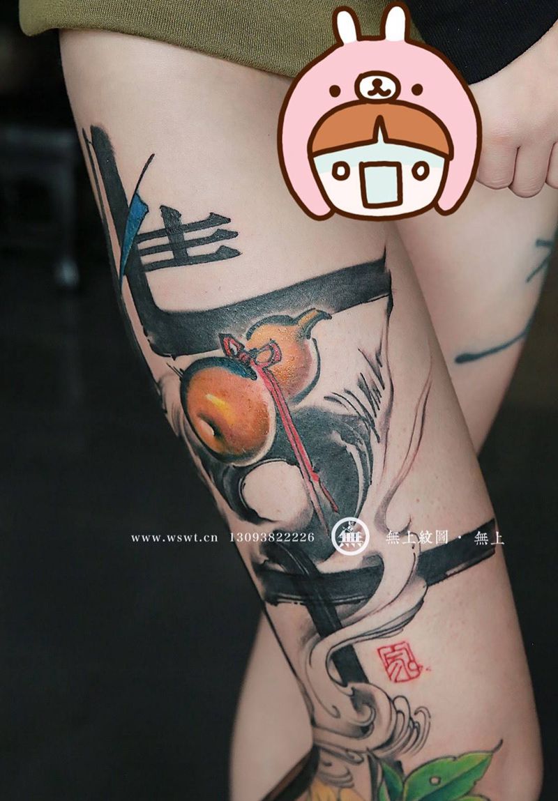 腿部书法纹身图片_成品腿部传统清新字符原创图腾无上纹图书法水墨纹身图案