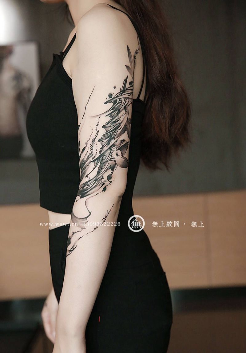 书法花臂纹身图片_成品手臂传统清新字符原创无上纹图书法水墨招生纹身图案