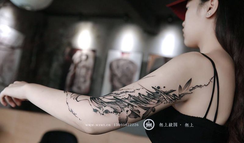 当前位置: 首页 >浙江省台州市纹身店-无上纹图纹身图案>书法花臂纹身图片_成品手臂传统清新字符原创无上纹图书法水墨招生纹身图案