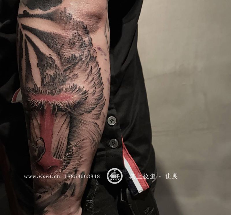 狒狒纹身纹身图片_成品手臂欧美动物原创无上纹图纹身图案