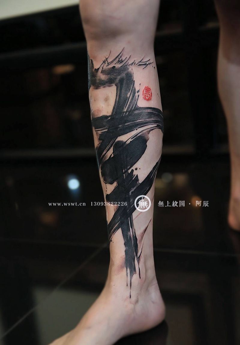 当前位置: 首页 >浙江省台州市纹身店-无上纹图纹身图案>书法包小腿纹身图片_成品腿部传统清新字符原创无上纹图水墨书法纹身图案