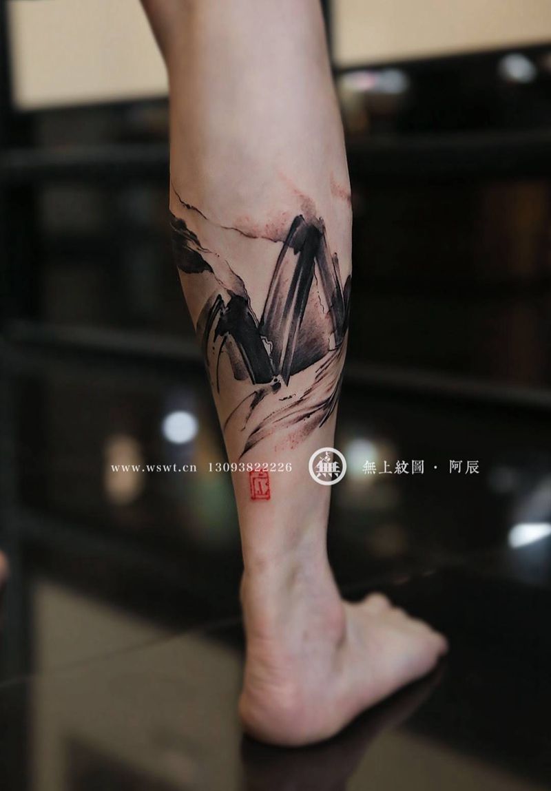 当前位置: 首页 >浙江省台州市纹身店-无上纹图纹身图案>书法包小腿纹身图片_成品腿部传统清新字符原创无上纹图水墨书法纹身图案