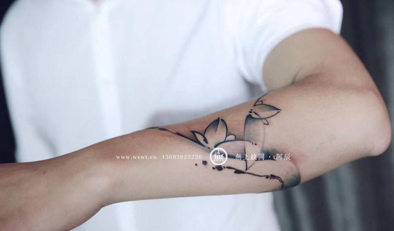 当前位置: 首页 >浙江省台州市纹身店-无上纹图纹身图案>情侣水墨花鸟纹身图片_成品手臂传统清新动物植物原创无上纹图水墨纹身图案