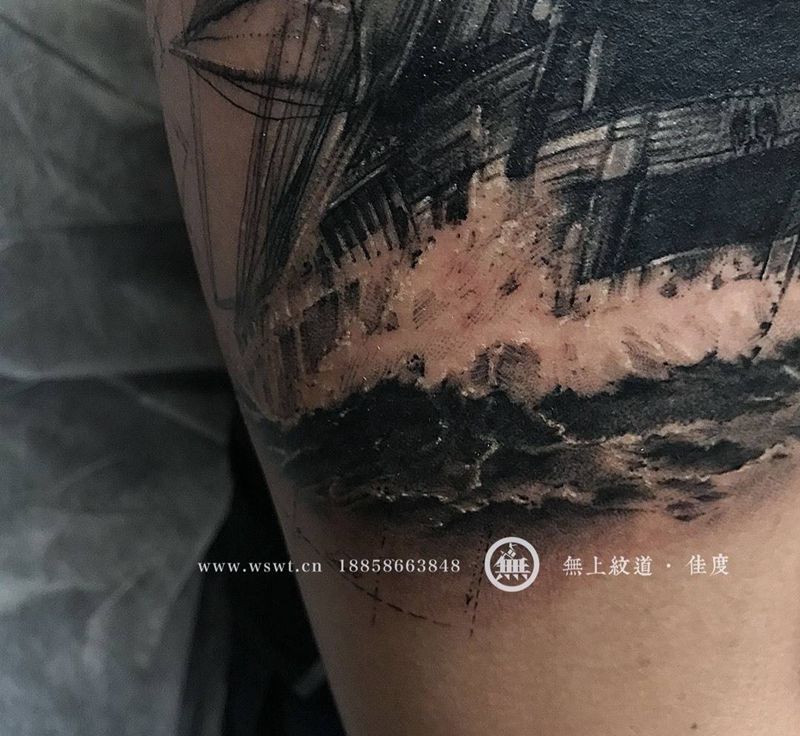 帆船纹身纹身图片_成品手臂欧美清新静物原创无上纹图招生纹身图案