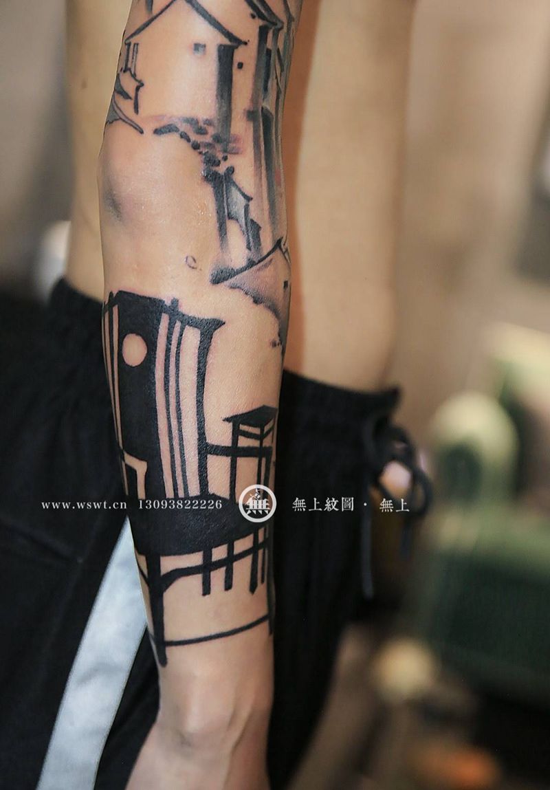 水墨花臂纹身图片_成品手部手臂传统字符静物原创无上纹图水墨纹身图案