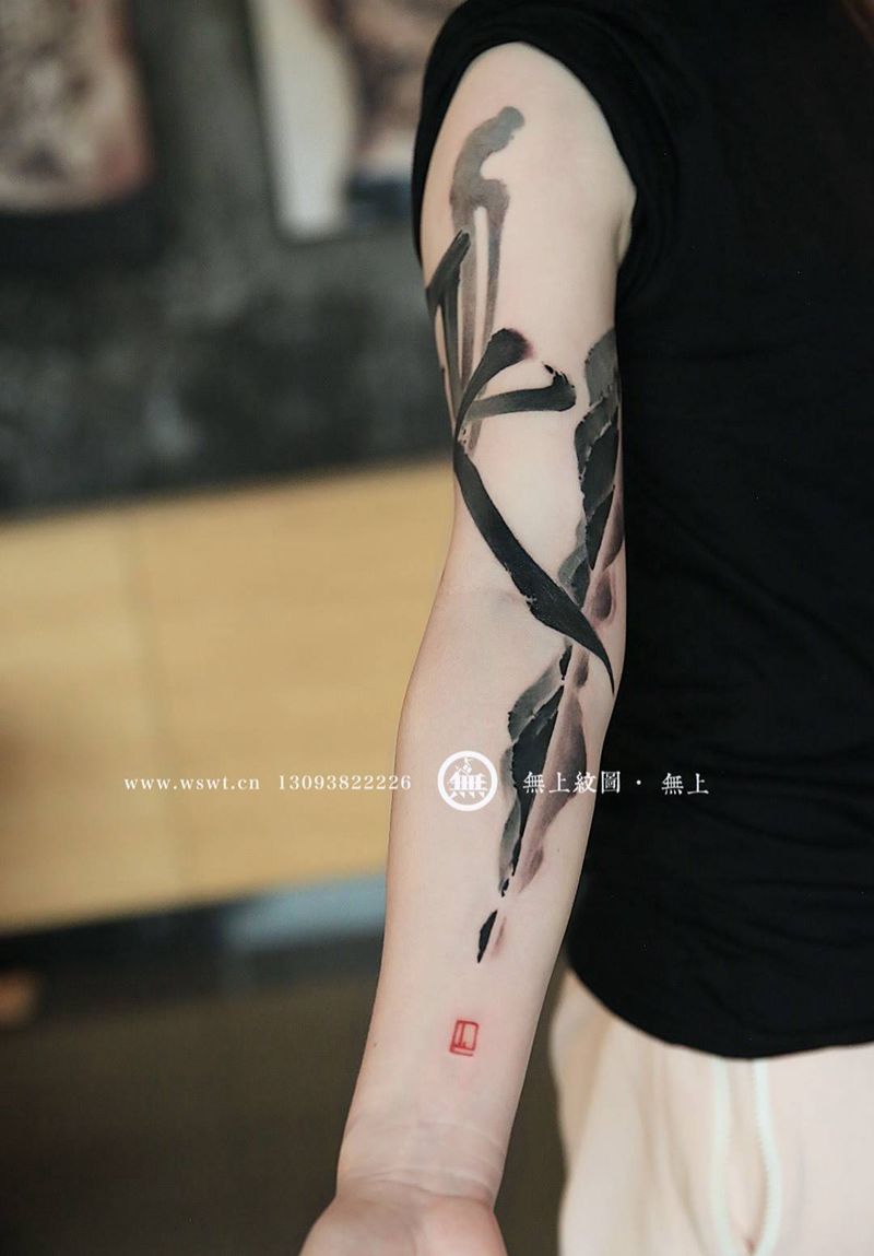 水墨纹身纹身图片_成品手臂传统清新字符静物原创无上纹图水墨书法纹身图案