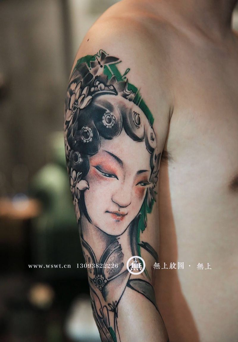 花旦花臂纹身图片_成品手臂传统清新原创人物肖像水墨无上纹图招生纹身图案