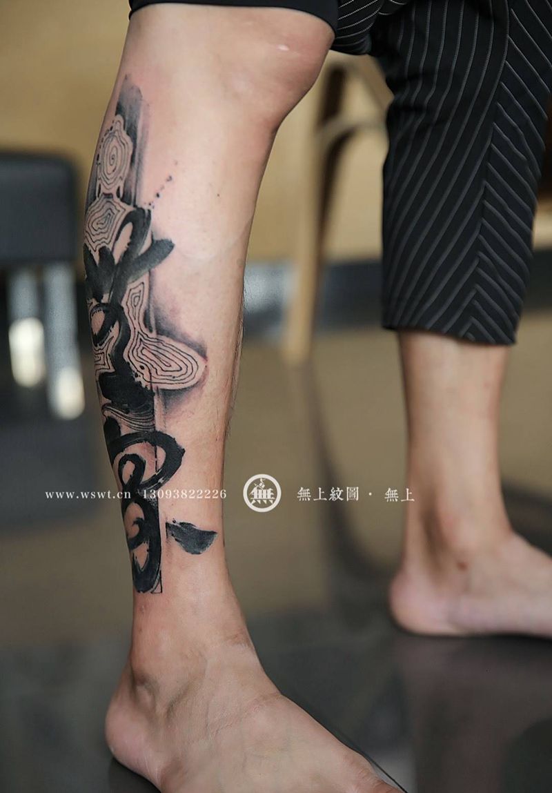 水墨书法纹身纹身图片_成品腿部传统清新字符原创宗教无上纹图水墨书法纹身图案