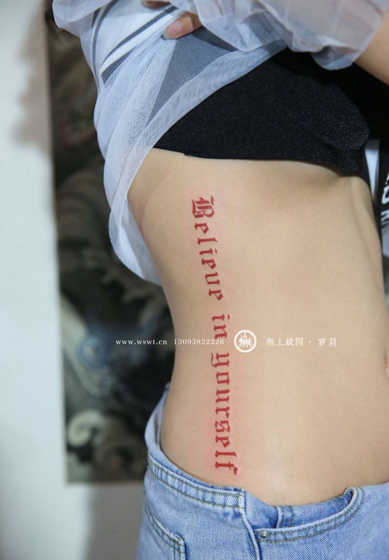 腰部纹身纹身图片_成品腰部清新英文无上纹图遮盖原创情侣纹身图案