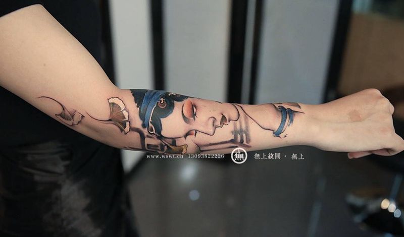 当前位置: 首页 >浙江省台州市纹身店-无上纹图纹身图案>花旦纹身图片_成品手臂习俗传统人物无上纹图培训手稿书法水墨纹身图案