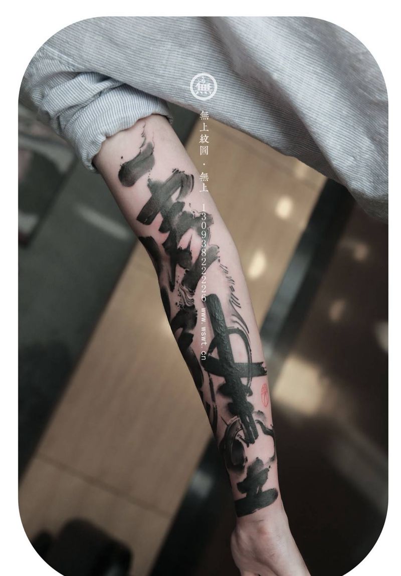 书法花臂遮盖旧纹身纹身图片_成品手臂传统清新字符原创无上纹图图腾水墨书法纹身图案