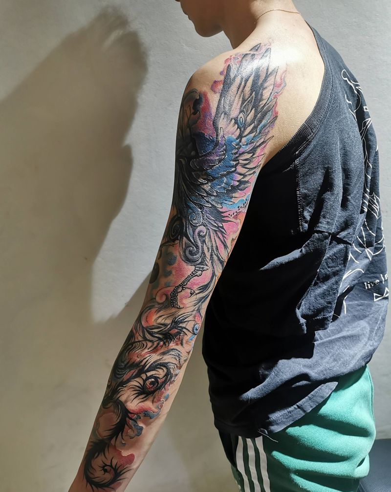 当前位置: 首页 >浙江省金华市纹身店-行者纹身纹身图案>遮盖纹身图片_手臂水彩新传统纹身图案