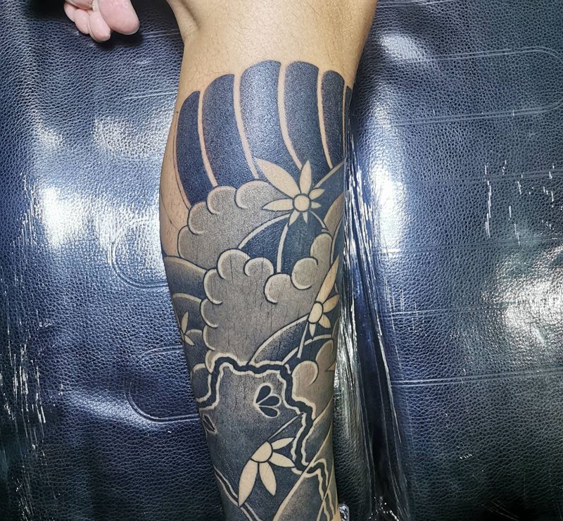 当前位置: 首页 >浙江省金华市纹身店-行者纹身纹身图案>圆五日式老传统纹身图片_腿部老传统纹身图案