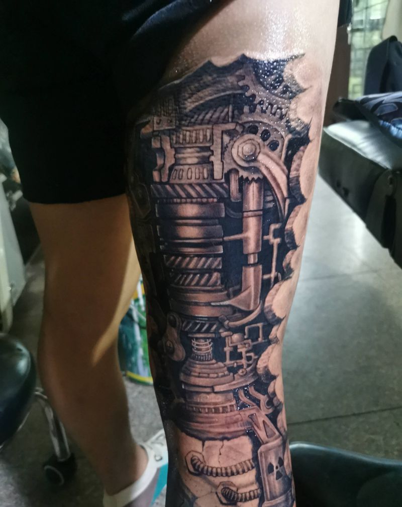 机械腿纹身图片_腿部欧美写实纹身图案