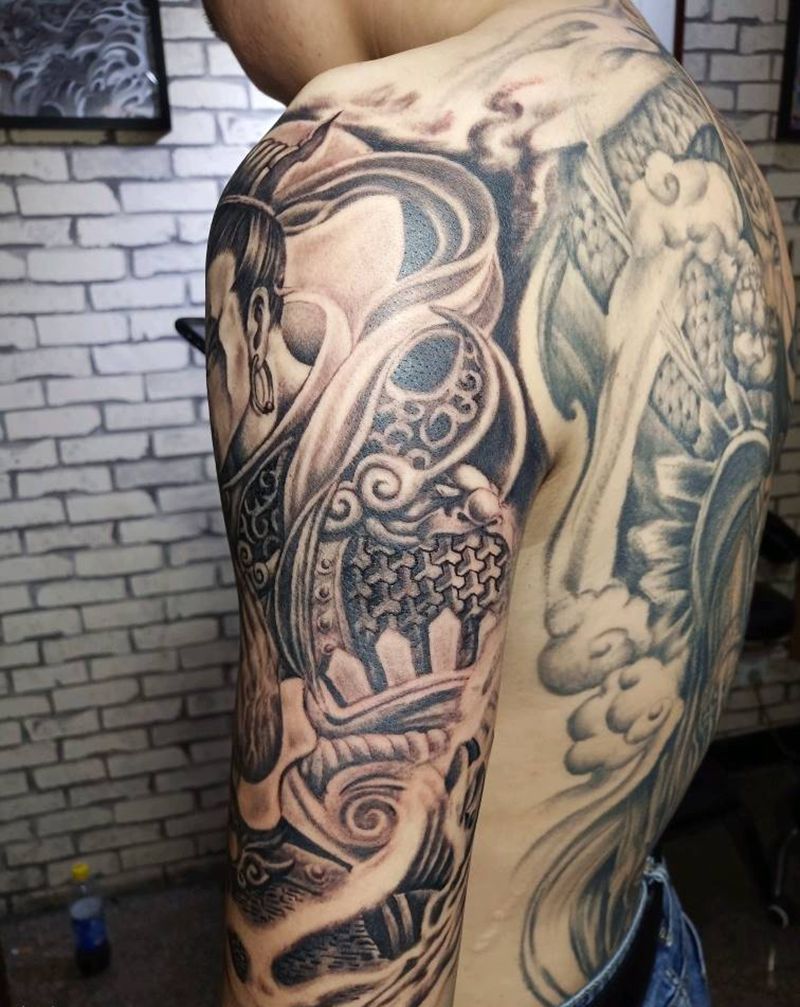 • 纹身吧推荐的披肩图腾半胛纹身图案作品展示
