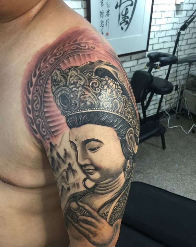 菩萨纹身图片_成品手臂写实人物宗教纹身图案