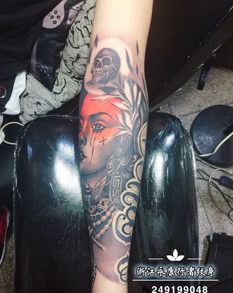 new school女郎纹身图片_成品手臂欧美人物纹身图案