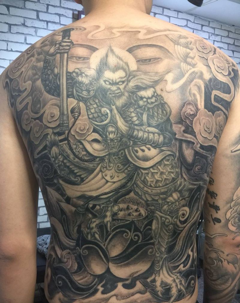 美猴王纹身图片_成品背部传统写实人物鬼神纹身图案