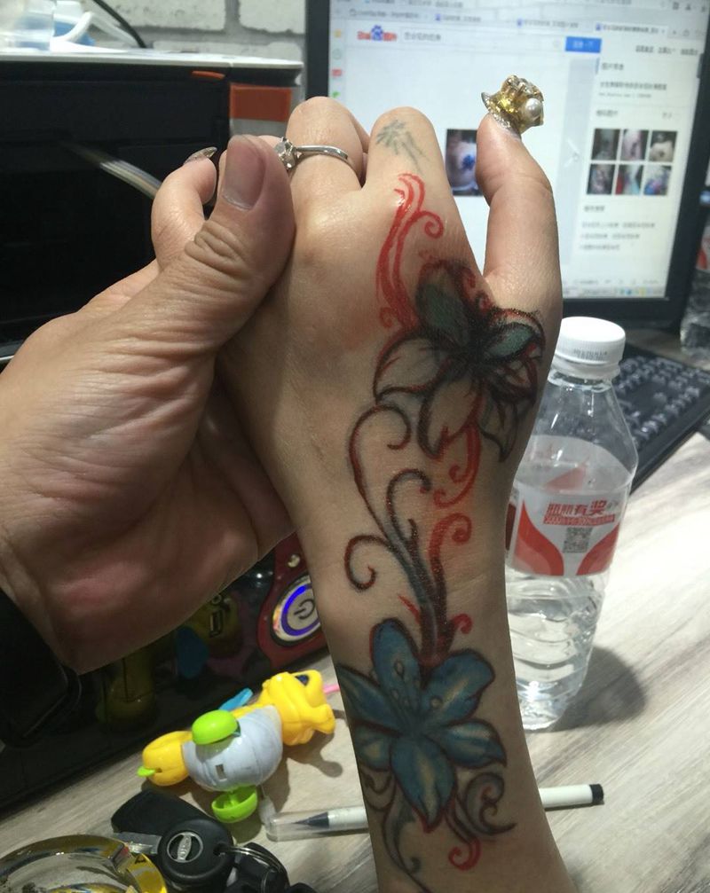 修改遮盖纹身图片_成品手部手臂传统清新植物原创纹身图案