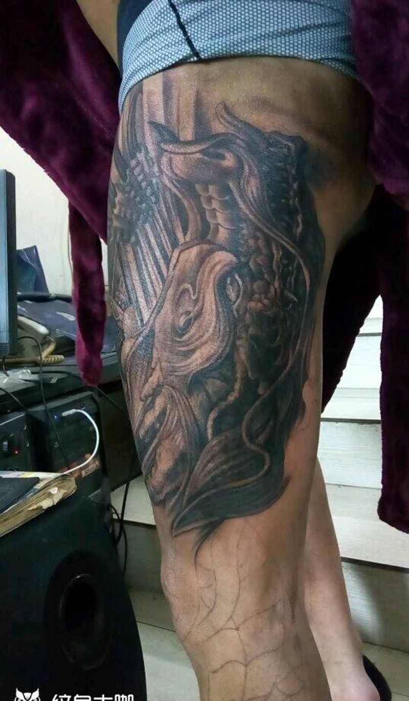 黑灰满背纹身图案
