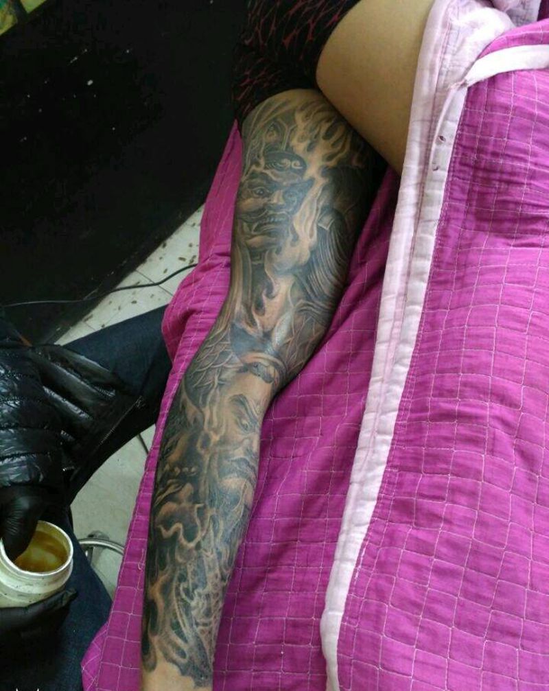 当前位置: 首页 >浙江省舟山市纹身店-舟山阿龙纹刺纹身图案>花腿四大天王纹刺细节图纹身图片