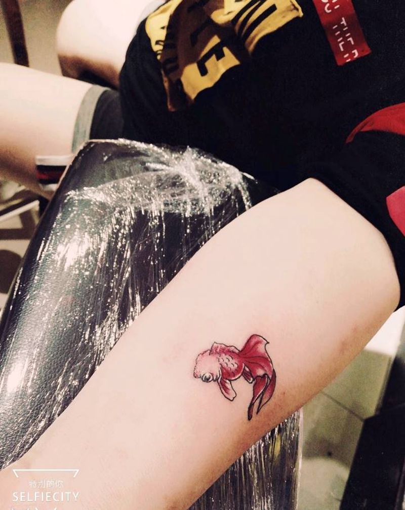 当前位置: 首页 >浙江省台州市纹身店-手艺人纹身工作室纹身图案>遮盖烟疤红色小金鱼一枚纹身图片