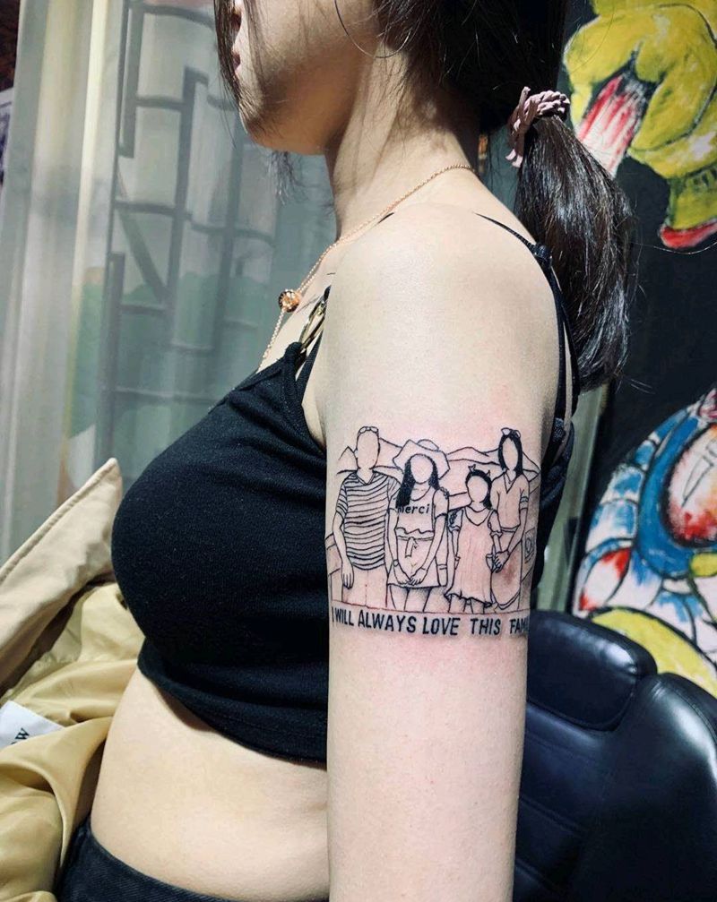 • T家庭图,一家四口生日纪念!纹身图片_手臂纹身图案