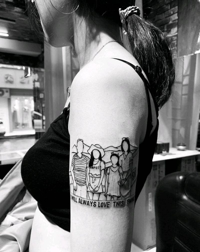 • T家庭图,一家四口生日纪念!纹身图片_手臂纹身图案