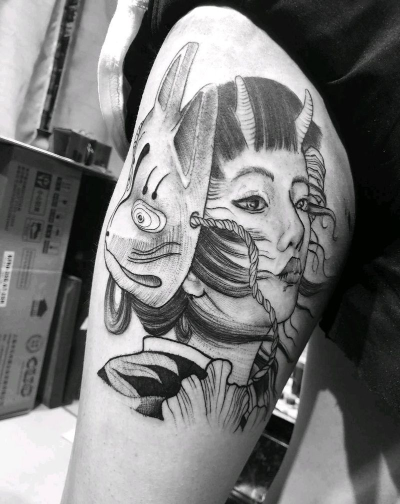 当前位置: 首页 >浙江省台州市纹身店-手艺人纹身工作室纹身图案>女艺妓纹身图片_腿部新传统纹身图案