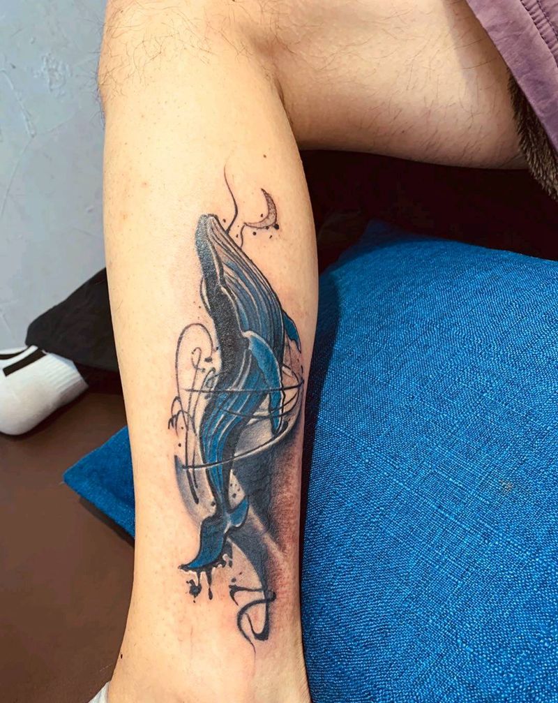 遮盖英文字母纹身图片_腿部水墨纹身图案
