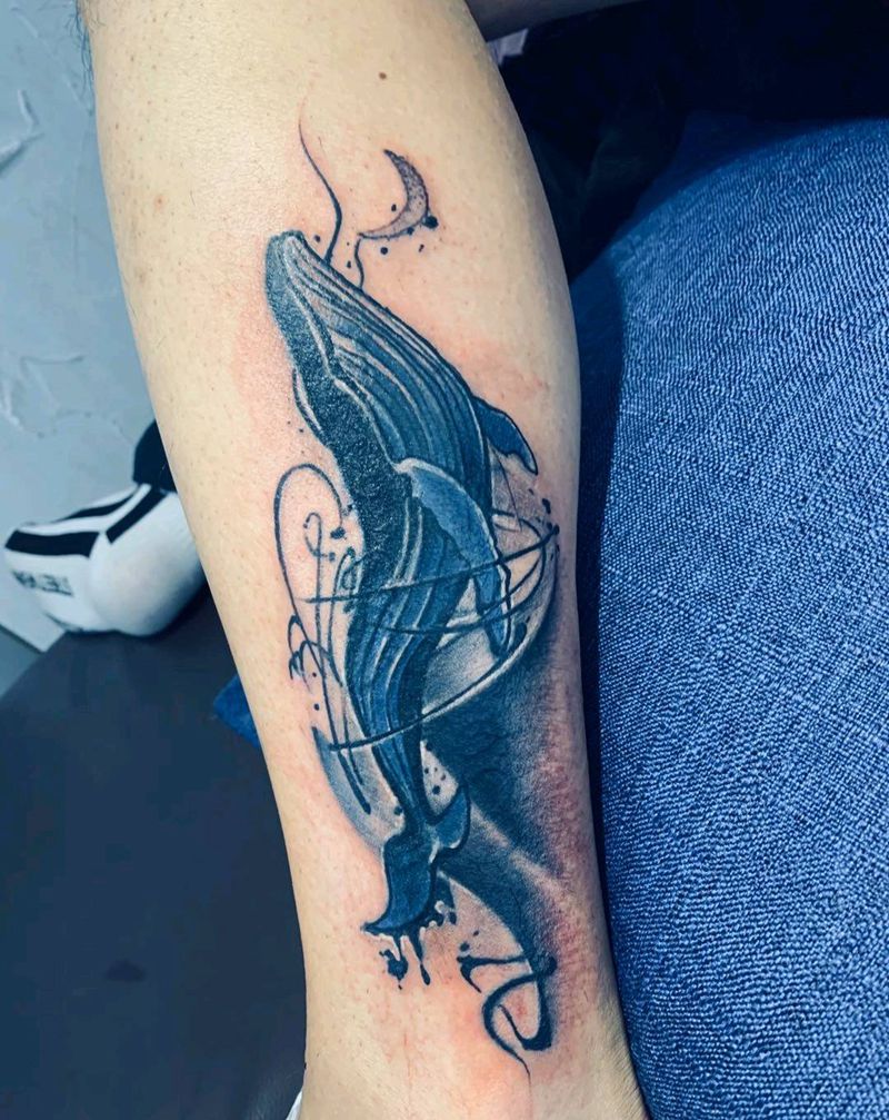 遮盖英文字母纹身图片_腿部水墨纹身图案