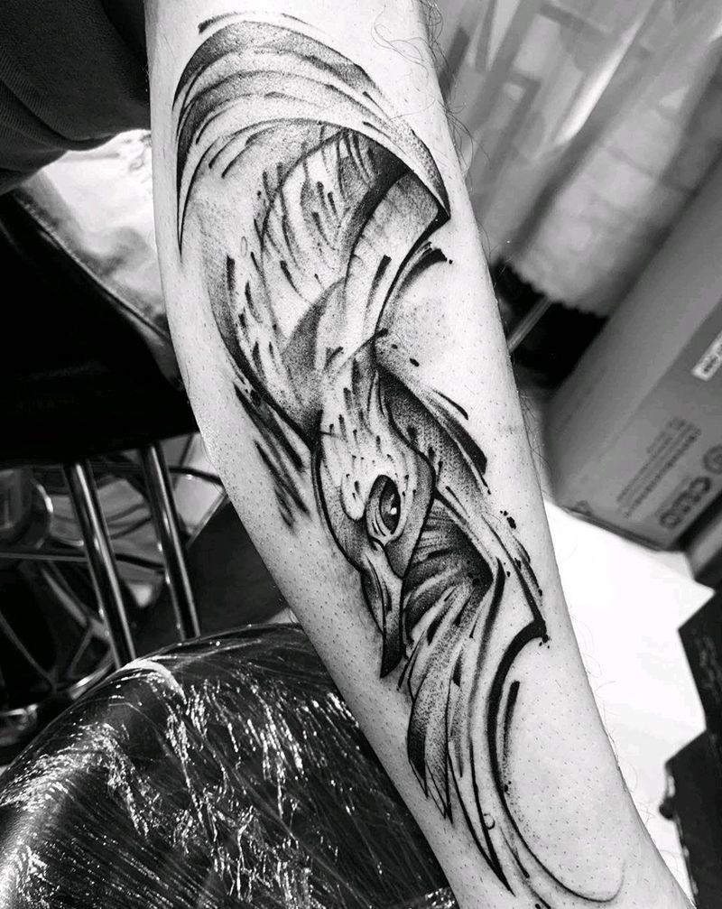 水墨 海鸥纹身图片_腿部水墨点刺纹身图案