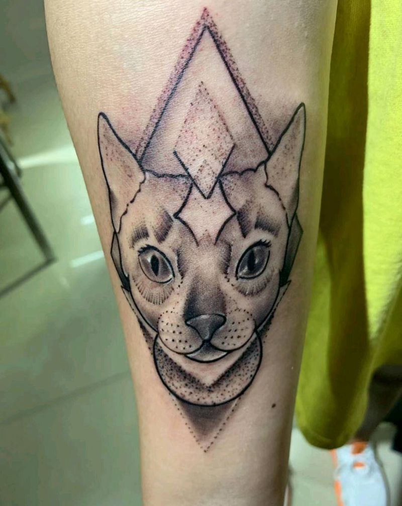 当前位置: 首页 >浙江省台州市纹身店-手艺人纹身工作室纹身图案>猫·首纹身图片_手臂几何纹身图案