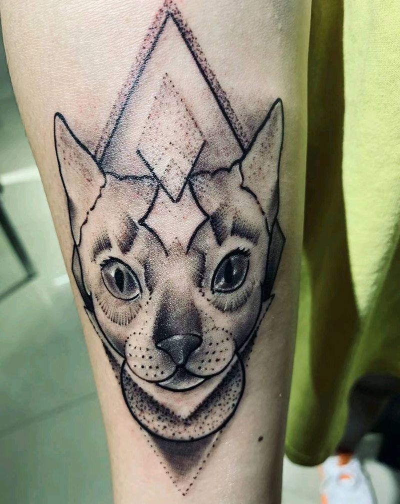 当前位置: 首页 >浙江省台州市纹身店-手艺人纹身工作室纹身图案>猫·首纹身图片_手臂几何纹身图案