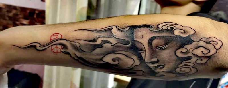 手绘佛首·禅云纹身图片_手部水墨纹身图案