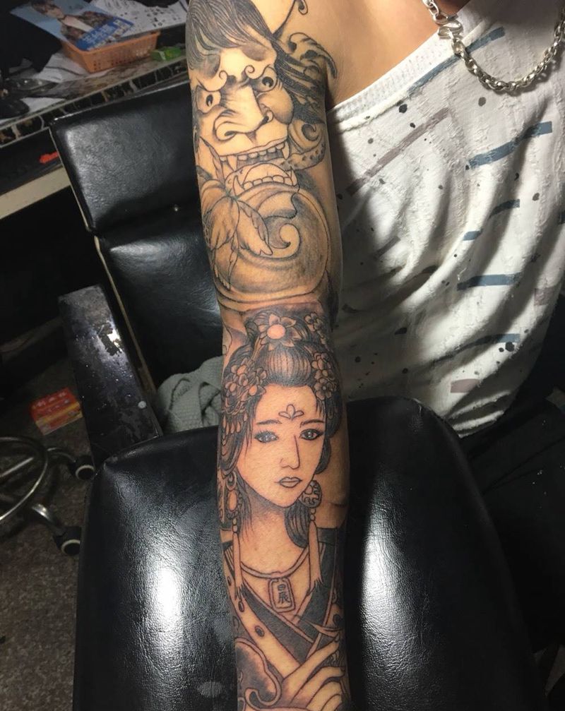 当前位置: 首页 >浙江省台州市纹身店-浪子纹身纹身图案>艺妓般若纹身图片