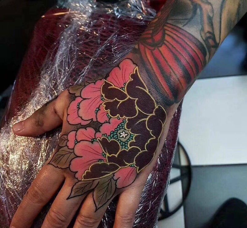 • 手背潮流时尚的玫瑰花眼睛纹身图案
