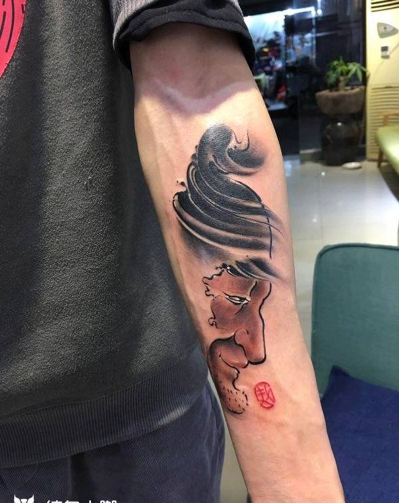 智慧的老者·遮盖老纹身纹身图片_手臂水墨纹身图案