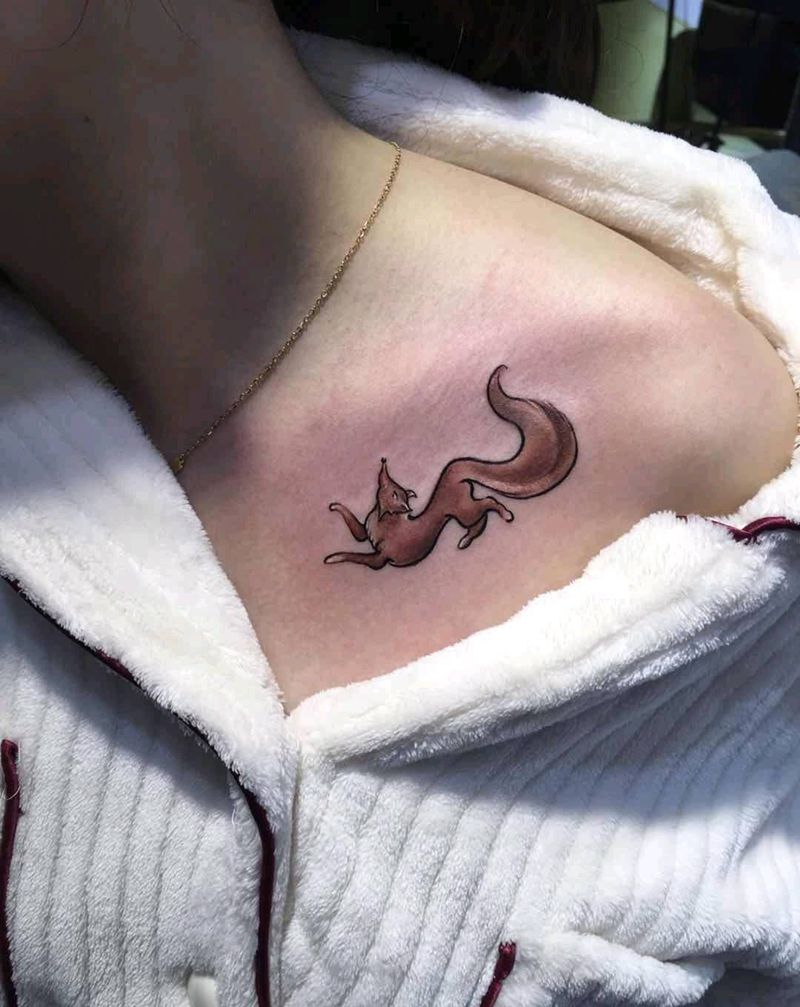 精致小狐狸纹身图片_肩部水墨纹身图案