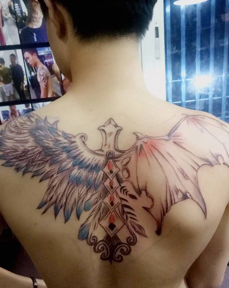 当前位置: 首页 >浙江省台州市纹身店-浪子纹身纹身图案>善恶翅膀纹身图片