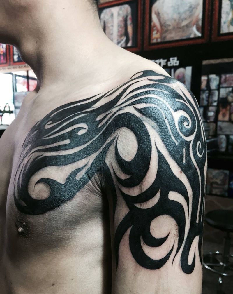 • 纹身吧推荐的披肩图腾半胛纹身图案作品展示