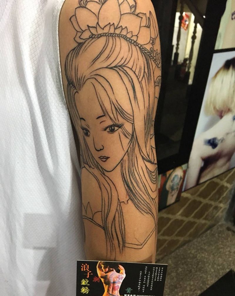 当前位置: 首页 >浙江省台州市纹身店-浪子纹身纹身图案>艺妓未完成下次再续纹身图片
